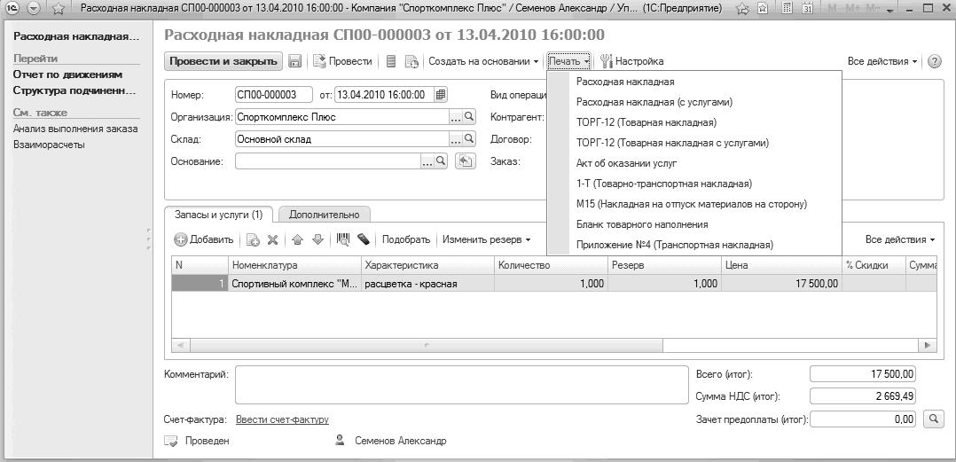 Рис. 42. Печатные формы документа "Расходная накладная"