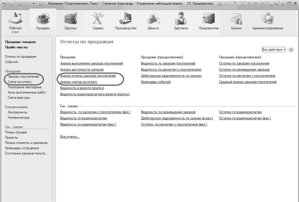 Рис. 50. Документы и отчеты для учета и контроля платежей покупателей