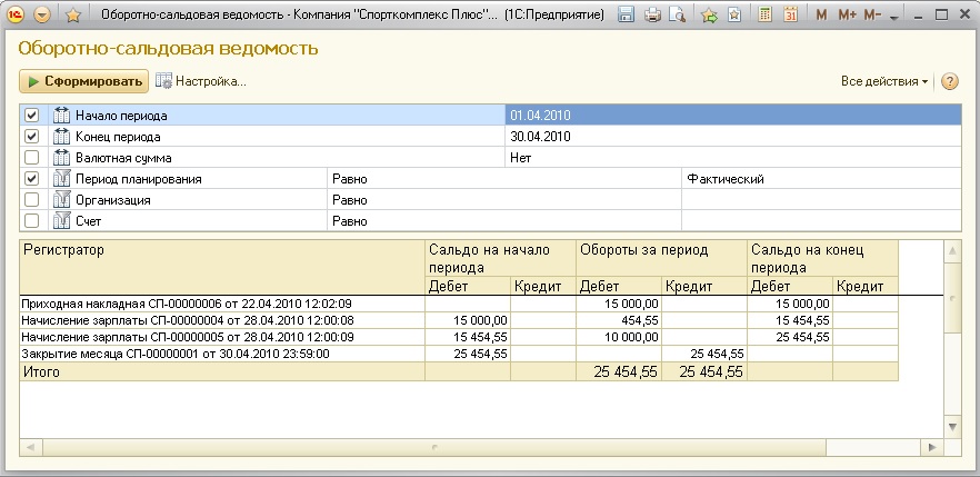 Рис. 205. Оборотно-сальдовая ведомость по всем счетам