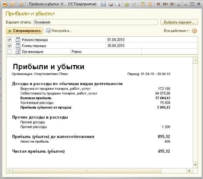 отчет "Прибыли и убытки" - для получения сводных данных о прибылях и убытках, в общепринятой форме.