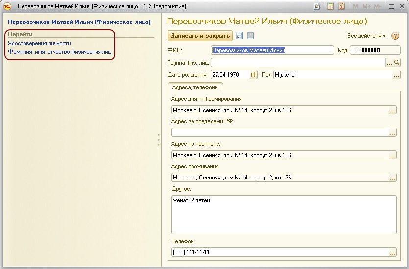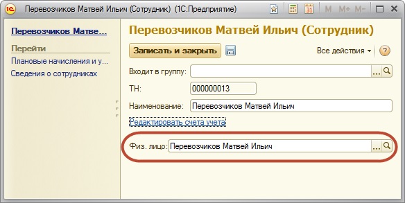 Напомним, что список "Физические лица" носит в программе универсальный характер и может содержать не только записи о сотрудниках, но и, например, о контрагентах, являющихся физическими лицами.