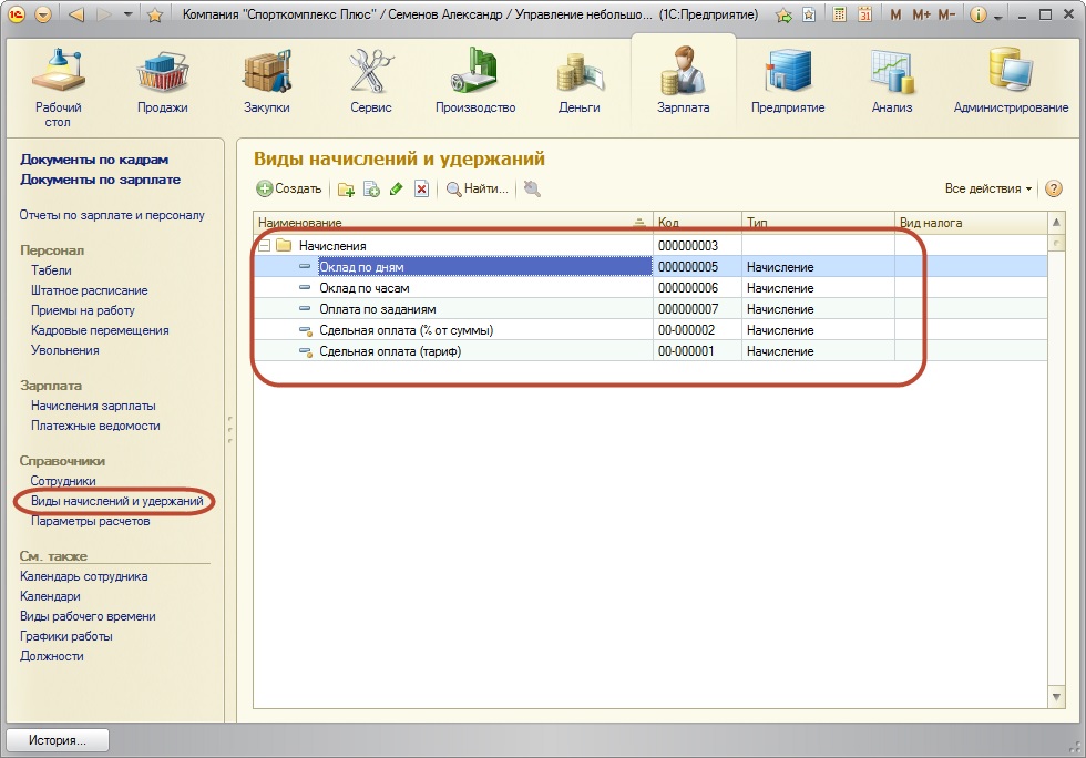 Рис. 229. Виды начислений и удержаний