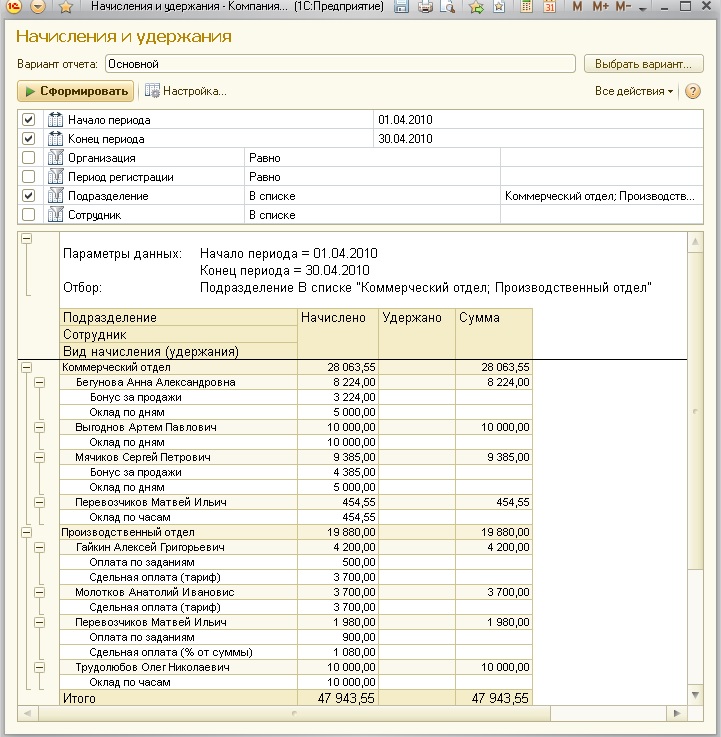 Рис. 234. Отчет "Начисления и удержания"