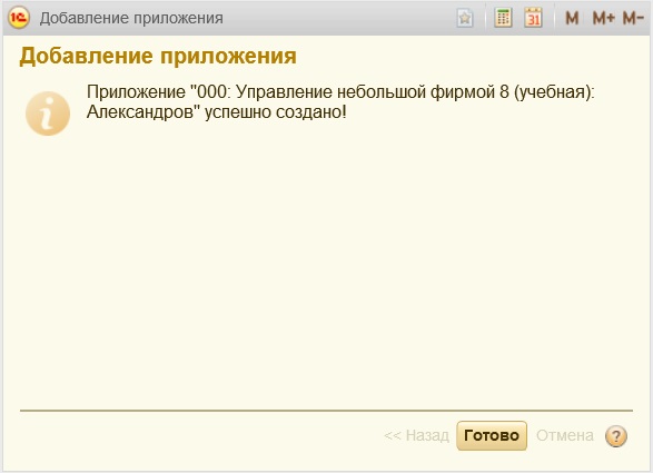 Рис. 1-6. Завершение процесса создания новой рабочей области с информационной базой