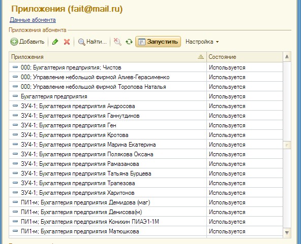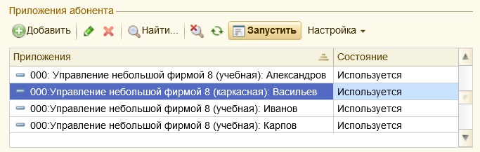 В учебном процессе приходится работать с информационными базами большого числа студентов, в связи с чем важно, чтобы имелись средства группировки информационных баз, например, по группам, преподавателям. Но Менеджер сервиса на момент написания пособия работает только с линейными списками и не представляет специальных средств для создания групп пользователей или групп пользователей определенных приложений. Единственная возможность группировки – это сортировка по наименованию приложения. Вот почему мы обратили внимание на возможность формирования произвольных наименований.