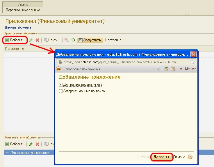 Итак, выберем режим добавления приложения Для начала ведения учета и нажмем кнопку Далее. Раскроется окно второго шага добавления приложения, показанное на рисунке 1-4.
