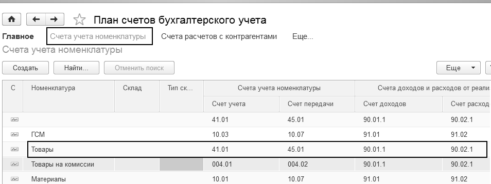 Рис. 13.1.3. Регистр сведений "Счета учета номенклатуры"