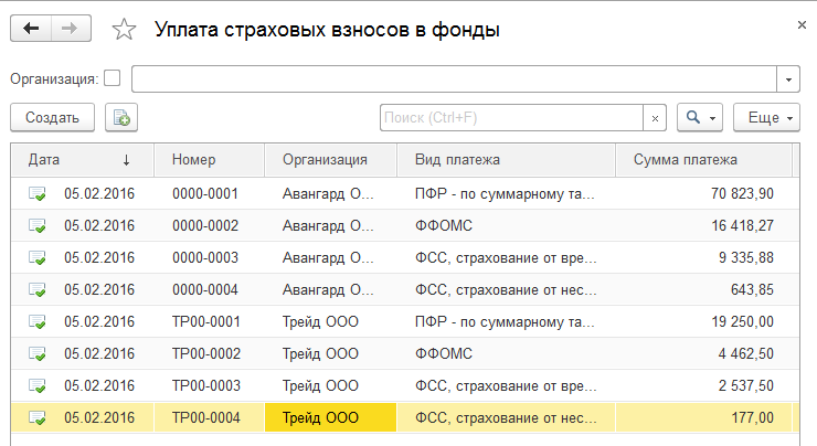 Зарегистрируем уплату взносов в фонды в феврале за январь: