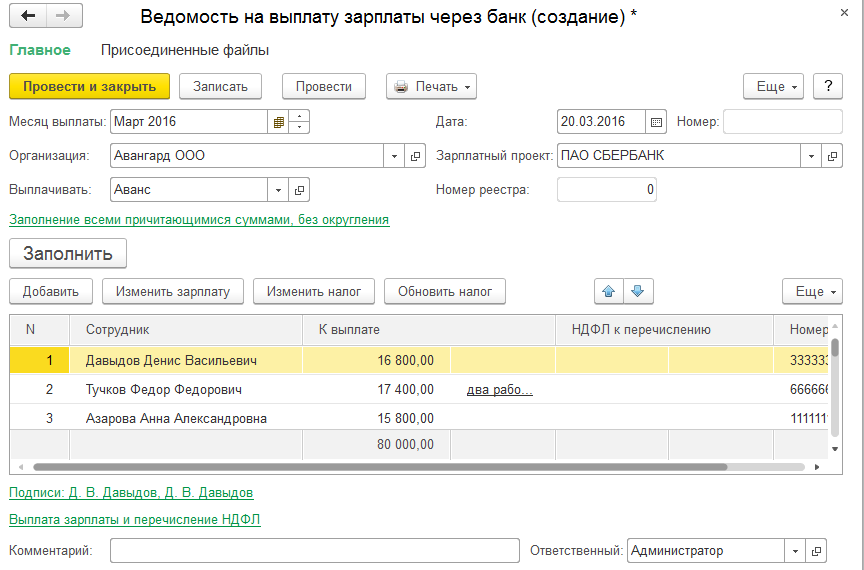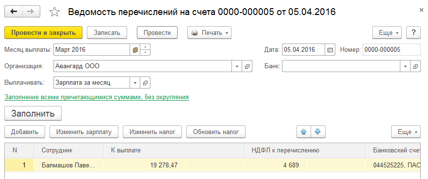 Выплатим зарплату через банк и на лицевые счета, реквизиты документов по уплате НДФЛ № 50 от 05.04.2016