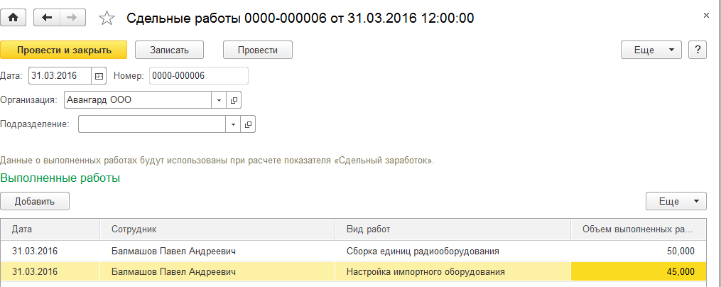 Данные для расчета зарплаты. После того, как пользователь убедился, что все документы обработаны, следует проверить и при необходимости ввести данные документом "Данные для расчета зарплаты": для сдельной выработки, для расчета начислений по фактическим показателям.