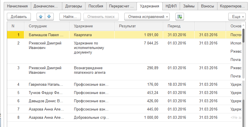 Проверка плановых начислений и разовых документов. К моменту окончательного расчета должны быть введены все кадровые приказы, все сведения о плановых начислениях, разовые документы по отсутствиям сотрудников, а также по разовым начислениям.