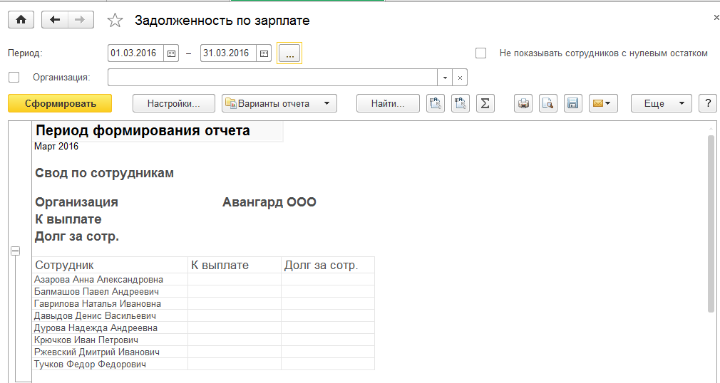 Анализ задолженности по заработной плате. После выплаты заработной платы следует проанализировать, не осталось ли сумм к выплате либо долга сотрудников (при необходимости можно оформить возврат задолженности).