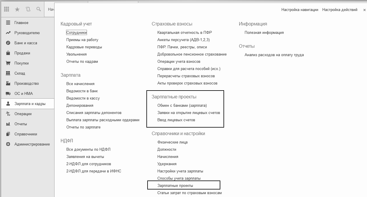 настройки/Зарплатные проекты")
