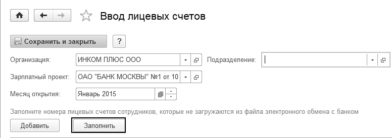 · массовый ввод номеров лицевых счетов всех сотрудников, у которых счета уже были открыты на момент начала использования электронного обмена в программе;