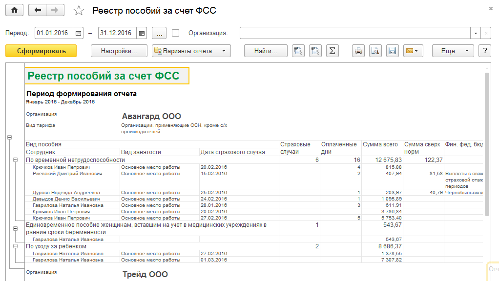 Реестр пособий за счет ФСС
