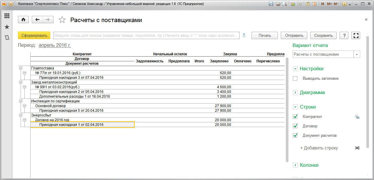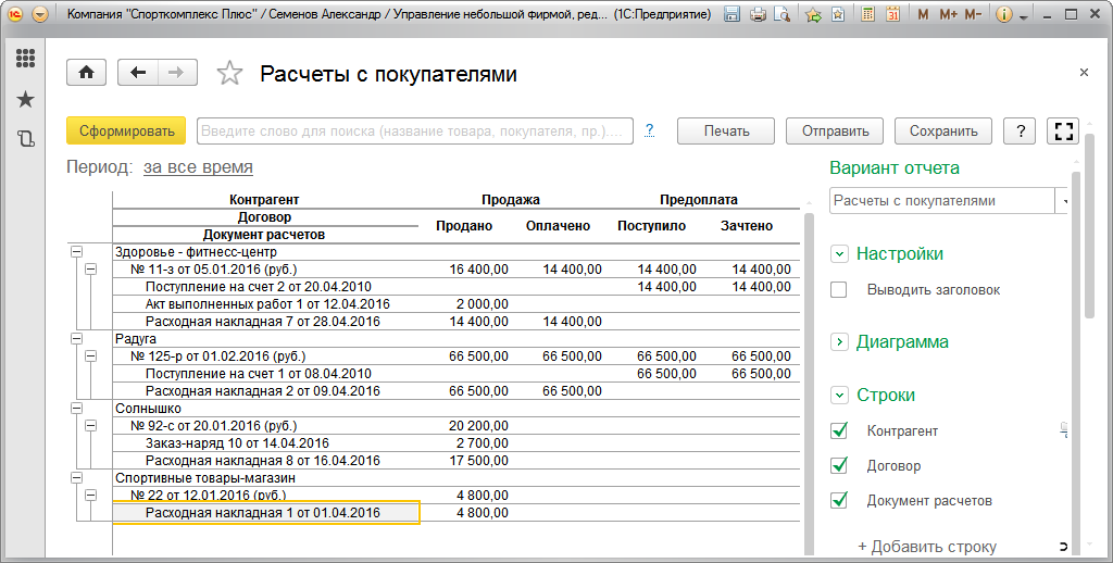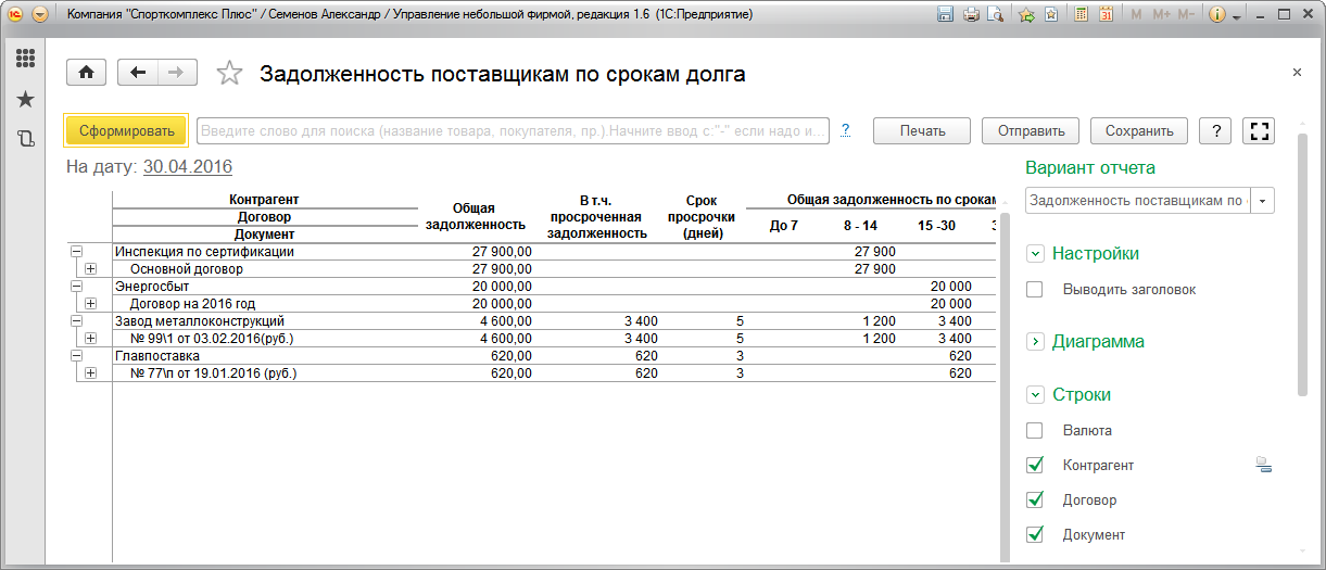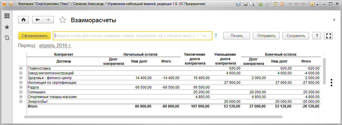 Для анализа состояния взаиморасчетов с поставщиками и покупателями в программе предназначено несколько отчетов. Рассмотрим по порядку.