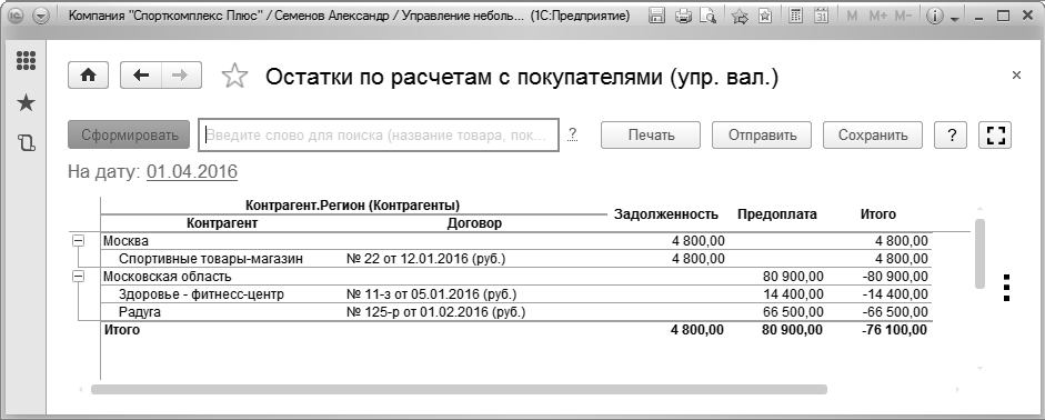 Рис. 166. Расчеты с покупателями, остатки по регионам