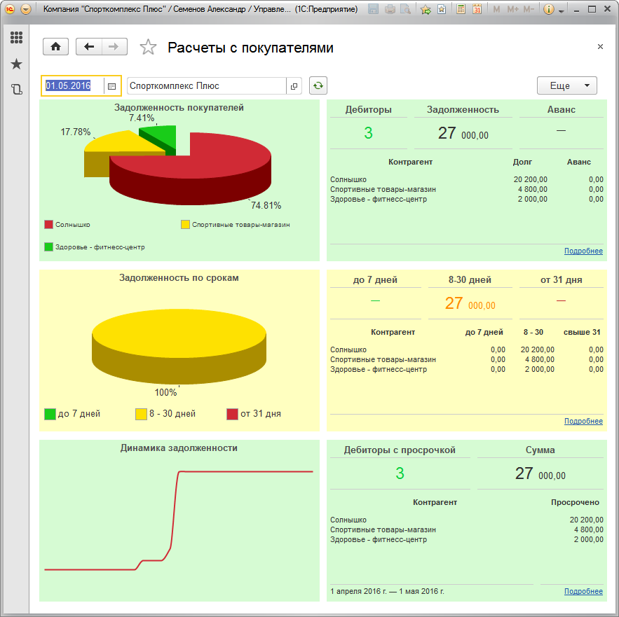 Рис. 173. Данные о расчетах с контрагентами на Мониторе руководителя