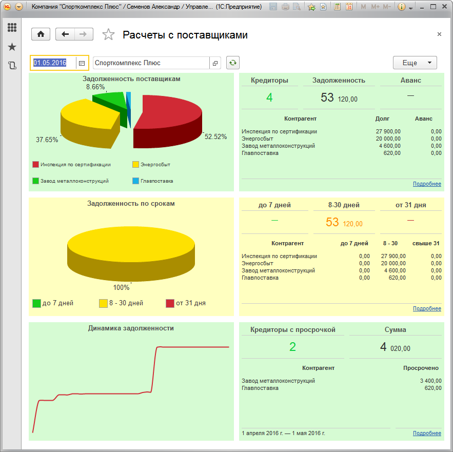 Рис. 172. Показатели деятельности \ Расчеты с поставщиками