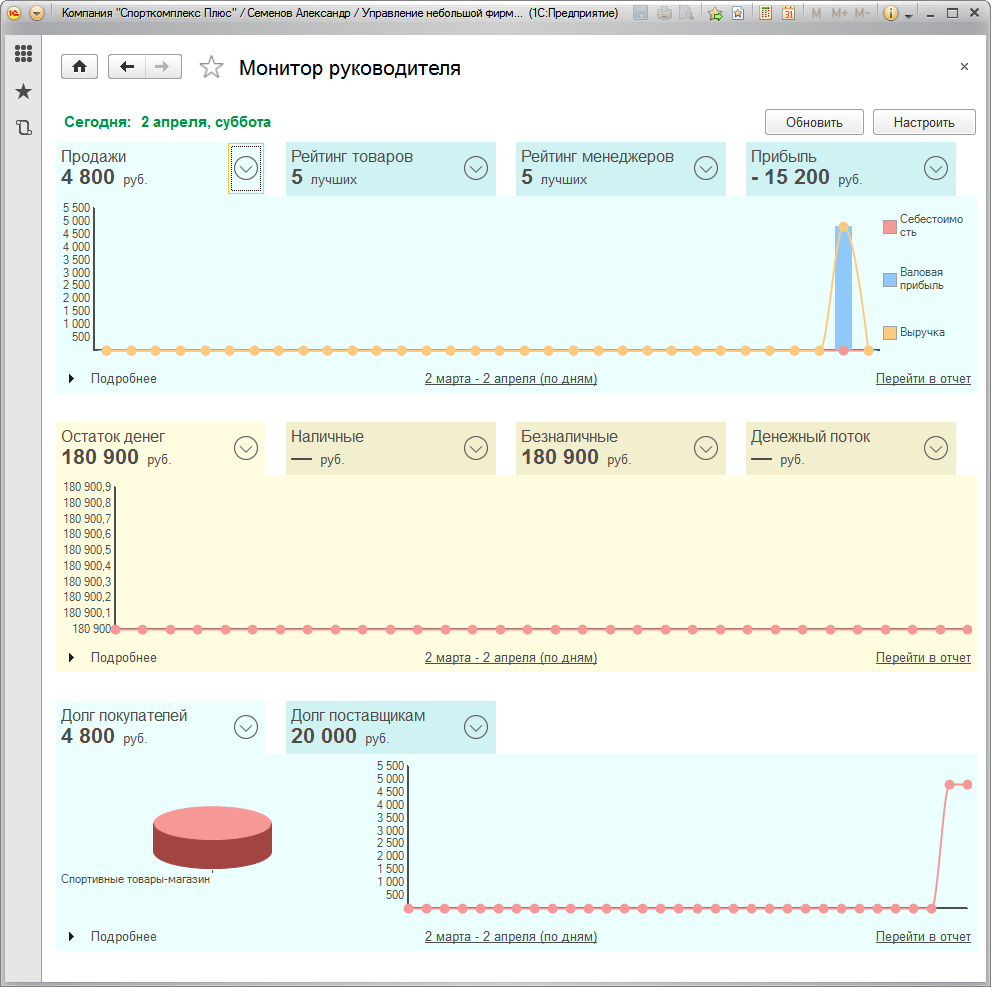 Аналитические данные о состоянии взаиморасчетов также представлены на "Мониторе руководителя", который доступен на панели навигации раздела "Анализ" См. Рис. 173.
