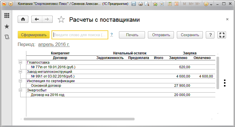 Рис. 168. Пример отчета "Расчеты с поставщиками"