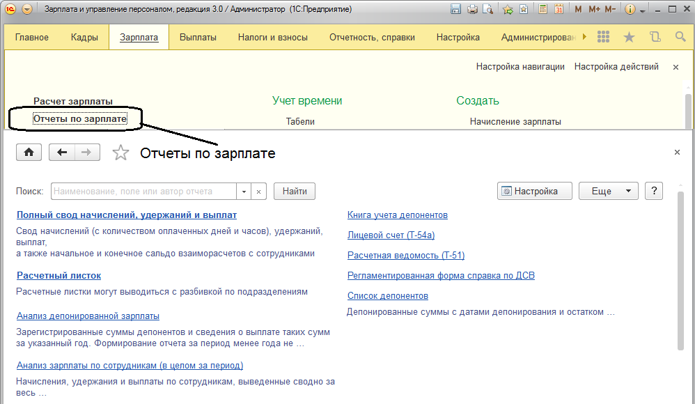 Проанализировать полученные результаты расчета зарплаты также можно с помощью отчетов. Отчеты по заработной плате доступны в разделе "Зарплата / Отчеты по зарплате".