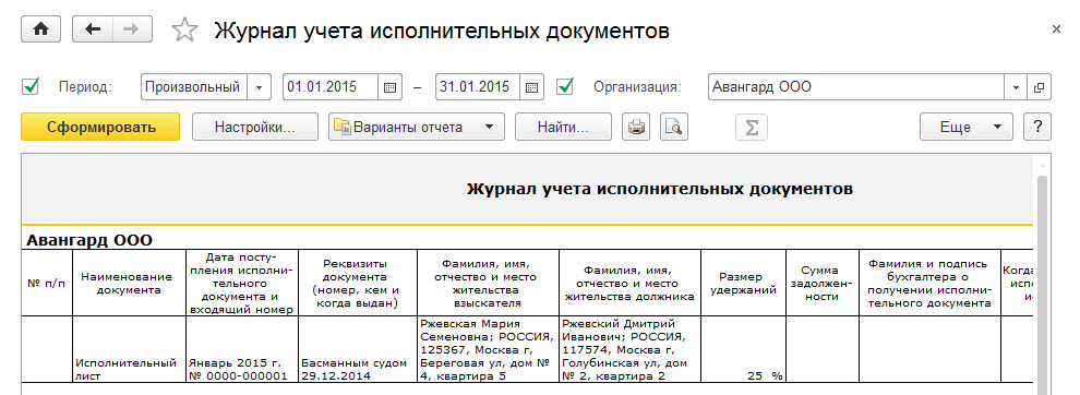 Журнал учета исполнительных документов