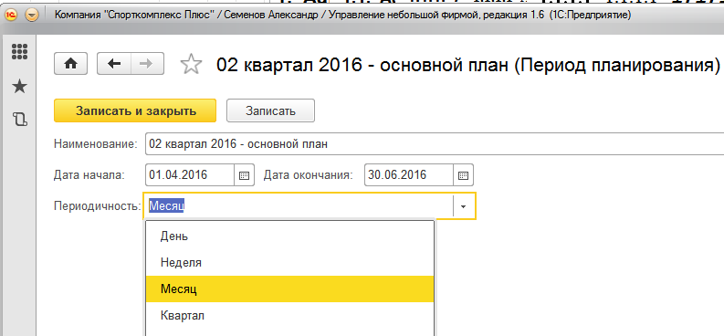 Например, если период планирования – квартал помесячно (как в примере на Рис. 98), то в реквизите "Период планирования" указывается период, соответствующий нужному кварталу (в примере - 02 квартал 2015), а в реквизите "Дата планирования" табличной части – дата начала конкретного месяца планирования внутри квартала (в примере – 01.04.2015).
