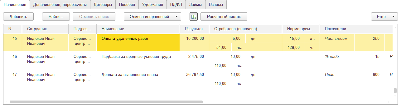 У Индюкова И.И. - оплата удаленных работ и доплата за выполнение плана.