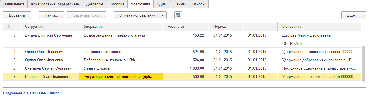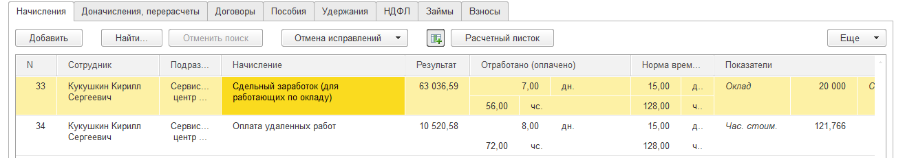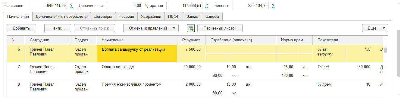 С использованием расчетных листков сотрудников проведем анализ выполнения начислений.
