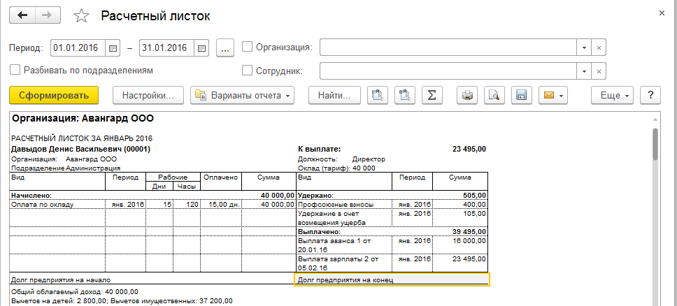 Обратите внимание, что в расчетном листке задолженность также отсутствует.