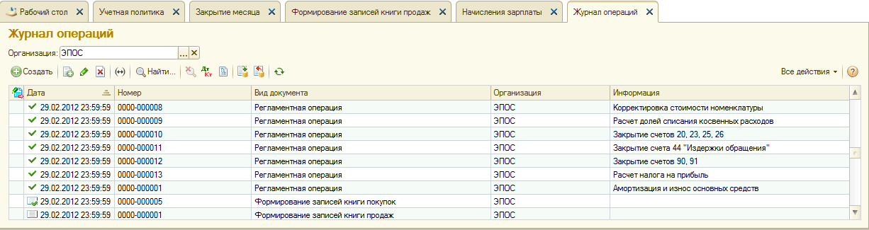 С использованием помощника «Закрытие месяца» выполнить регламентные операции за февраль 2012.