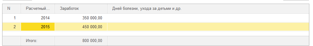 Заработок за 2014 год составил 350 000 руб., за 2015г. – 450 000 руб.