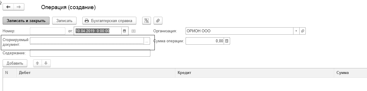 Рис. 24.1.10. Экранная форма документа "Операция", сторно движений документа