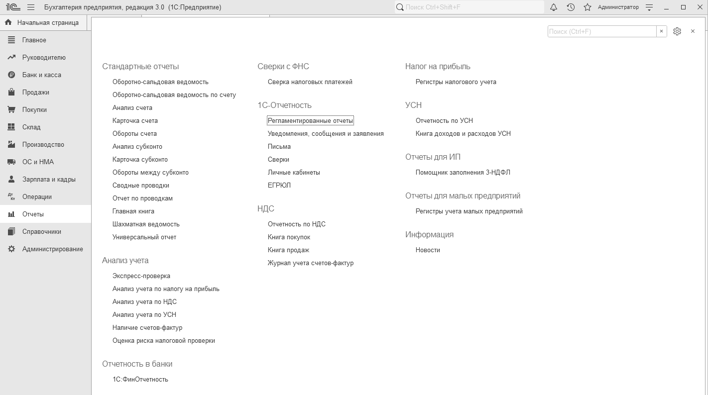 Специализированные отчеты служат для получения результатной информации по разделам бухгалтерского учета. Эти отчеты необходимы в том случае, если нужную информацию мы не можем получить из стандартных отчетов. Например, регистр налогового учета по НДФЛ, и др.