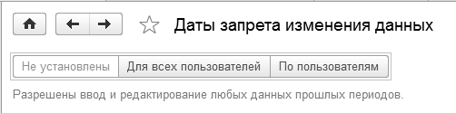 Дату запрета изменения данных можно не устанавливать, а можно устанавливать одну для всех пользователей, или каждому пользователю свою дату (рис. 26.4.1).