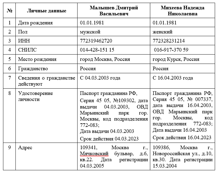 Проверить заполнение сведений по Малышеву Д.В. по рисунку 2.2.1.