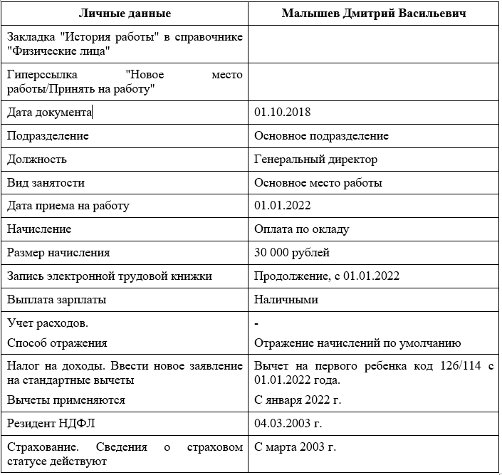 В этой же форме следует указать право на стандартные вычеты, с какой даты следует применять вычеты. Если эту информацию не заполнить, то начисление зарплаты будет отражаться не корректно.
