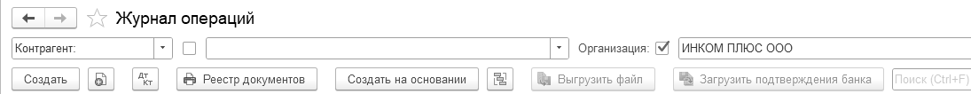 Все операции, введенные в программу, отражаются в "Журнале операций", который представляет собой их хронологический список, здесь отображаются все операции, как введенные документами программы, так и с использованием типовой операции или вручную.