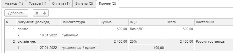- гостиница – 2 400 руб. В онлайн-чеке №1 и счете-фактуре № 1 от 27.01.2022 года гостиницы "Россия" выделен НДС 20% (400 руб.);