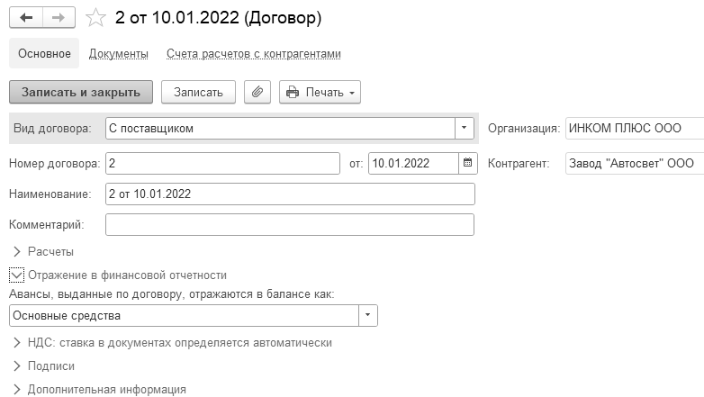 Для правильного формирования баланса проверьте заполнение договора по рисунку 7.1.3.