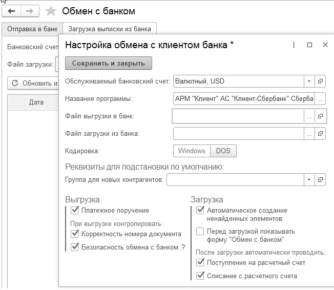 Механизм обмена позволяет выгружать и загружать операции по валютным счетам.