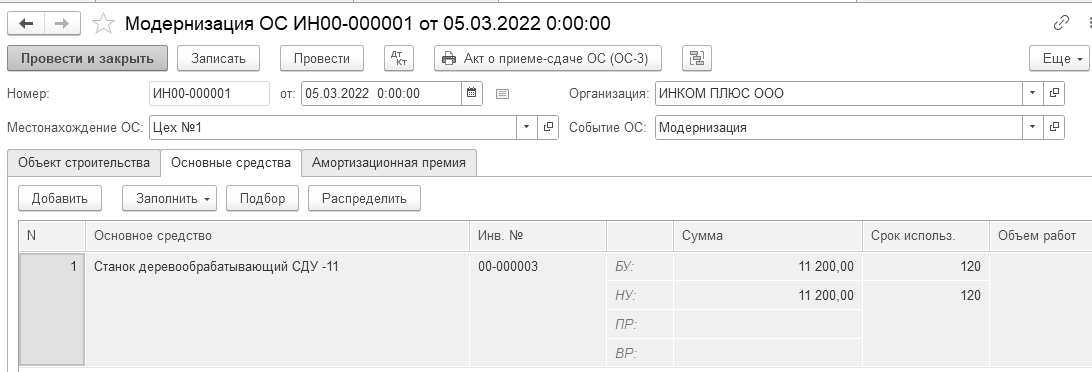 05.03.2022 года создайте документ "Модернизация ОС".