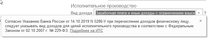 Вид дохода - "Заработная плата и иные доходы с ограничением взыскания"