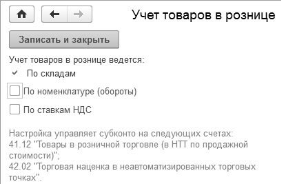Гиперссылка "Учет товаров в рознице" – заполнена по умолчанию (рис. 1.4.2).