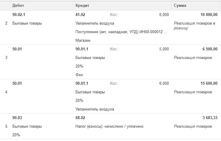 Магазин реализовал в розницу 5 фенов и 6 увлажнителей воздуха. Оформить необходимые документы. Сделать в магазине инвентаризацию.