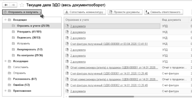 Мы уже изучили, как создать документ реализации, выписать счет-фактуру. При бумажном документообороте мы бы распечатали эти документы и передали клиенту каким-либо образом. Сейчас на одном примере мы рассмотрим, как можно подписать и отправить документы в электронном виде.