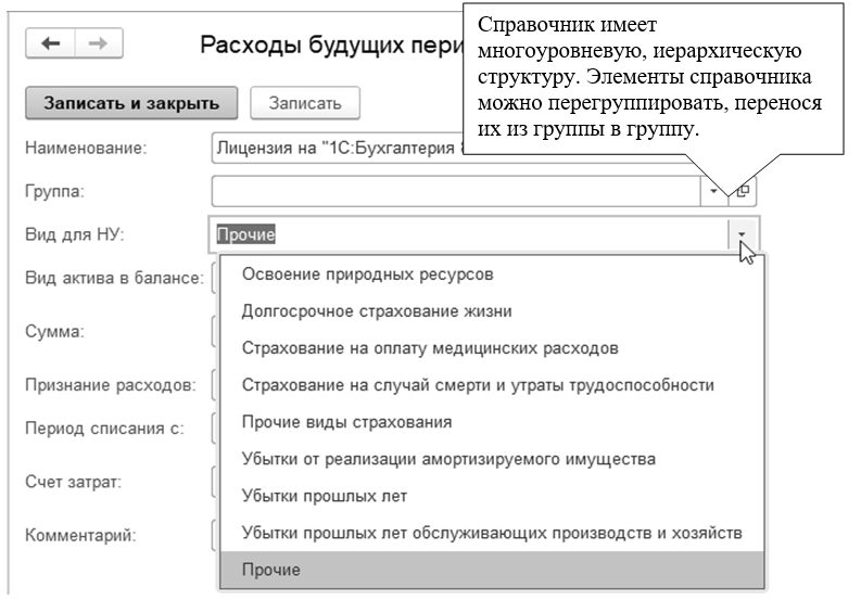 Рис. 14.1. Фрагмент формы справочника "Расходы будущих периодов"