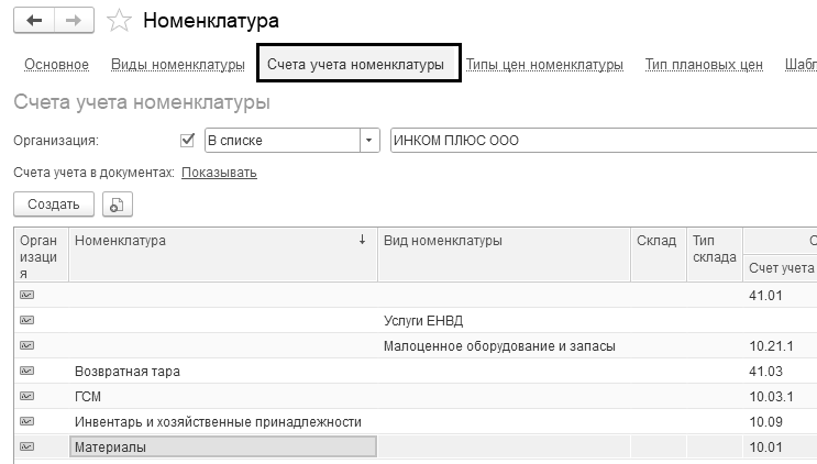 Рис. 15.5. Счета учета номенклатуры