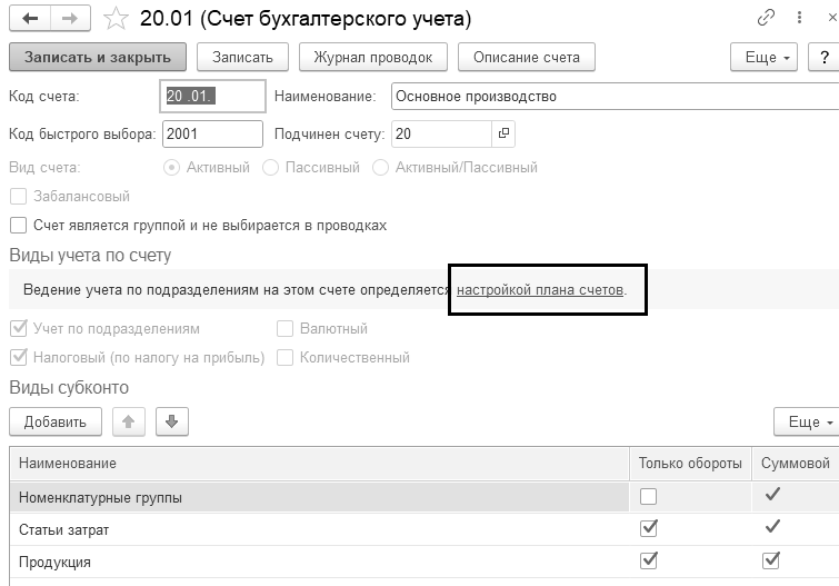 Аналитический учет затрат на производство по номенклатурным группам и статьям затрат включен всегда.